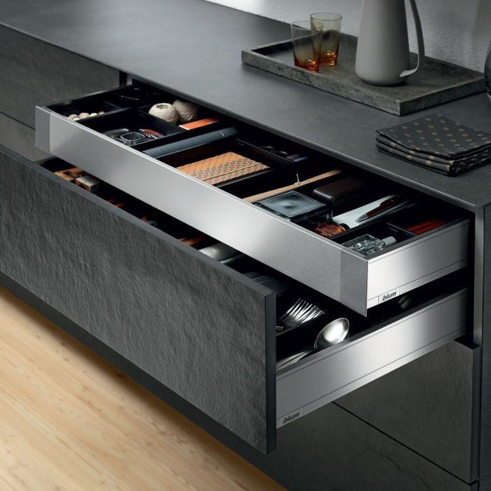 LEGRABOX ievieš pilnīgi jaunu krāsu koncepciju. Iespējams izvēlēties klienta logo kā iestrādātu atvilktnes sānu malu dizaina komponenti. LEGRABOX ir virkne lietojuma iespēju, un tas lieliski izskatās jebkurā dzīvojamajā zonā, neatkarīgi no tā, vai to izmanto ar atvilktnēm vai iekšējām atvilktnēm, ar izvelkamajiem plauktiem ar augstu priekšpaneli vai iekšējiem izvelkamajiem plauktiem.